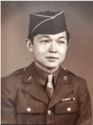 My father lived in Pa’auilo on the Big Island of Hawai’i until he was 24 when he enlisted in the US Army on February 23, 1942, with the rank of private. He was stationed at Schofield Barracks on the Island of O’ahu, Hawai’i. On his enlistment papers, he indicated his religious affiliation was “Protestant” to conceal the fact that he was a Buddhist and avoid any association with Japan.
